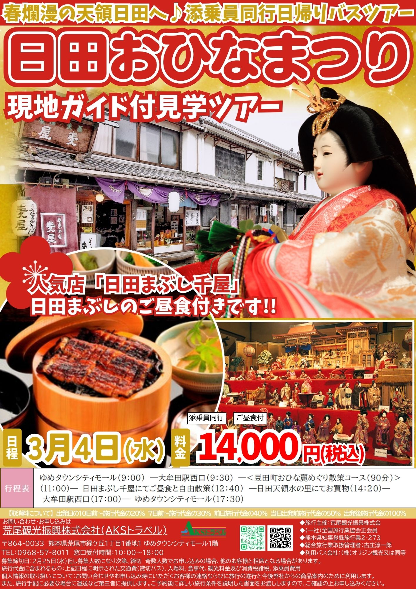 *3/4(水)発【日田おひなまつり 現地ガイド付見学ツアー】